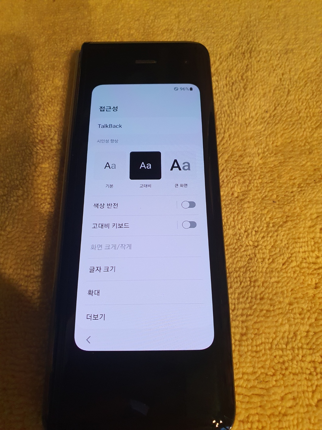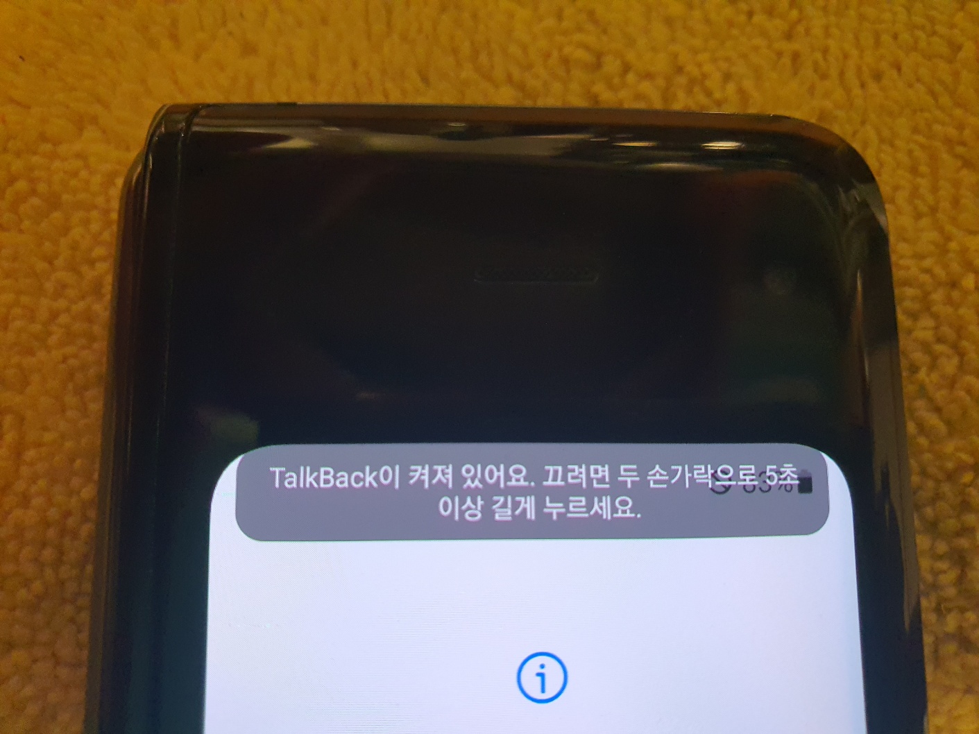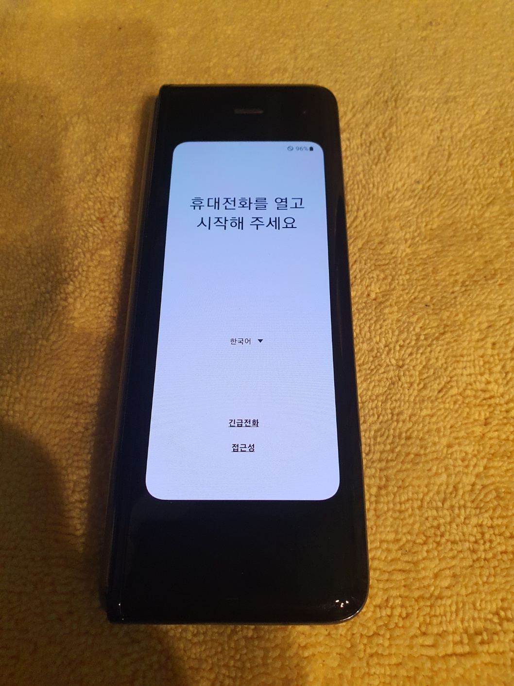 인내심을 가지고 접근성 활성화 후 초기화면으로 나가면 외부액정에 초기 세팅 화면이 나옵니다.