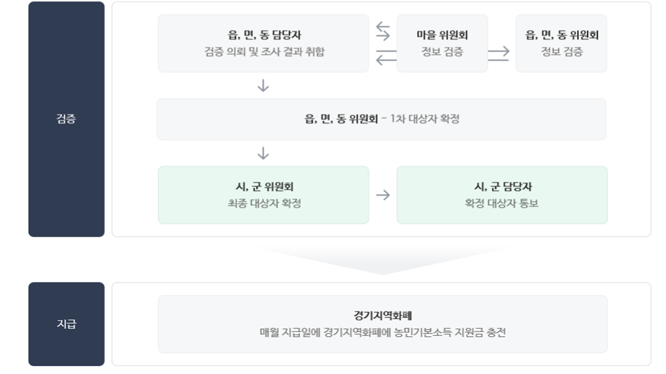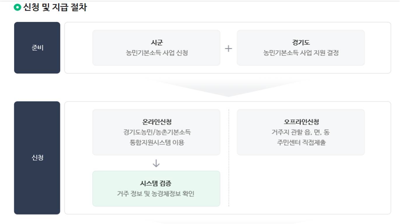 경기도를 예를 들어 말씀을 드리면, 경기도 농민기본소득 시행지역에 거주 중인 농업에 종사하는 농민만 신청할 수 있습니다.