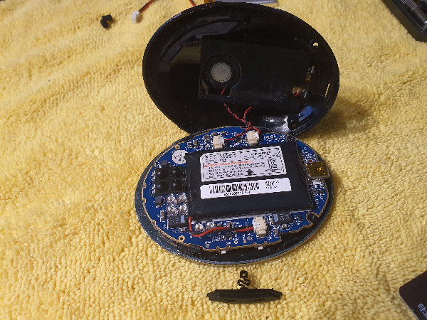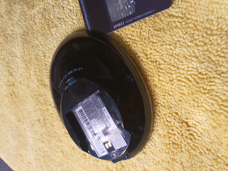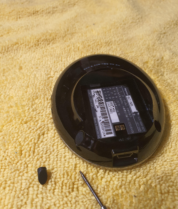 배터리가 약간 부푼듯한 모습입니다. 음량조절 버튼은 거치대방향의 위치에 작은 플라스틱에 고정될 수 있습니다.
