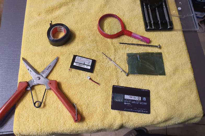 작업했던 공구들입니다. 노안이 있어 돋보기까지 동원하였습니다.